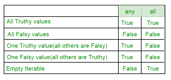 They are used to define the syntax and structure of the python language. Python has a set of keywords that are reserved words that cannot be used as variable names function names or any other identifiers. Stop the execution as soon as the result is known. It returns false if empty or all are false. The programming language of python has a set of keywords.